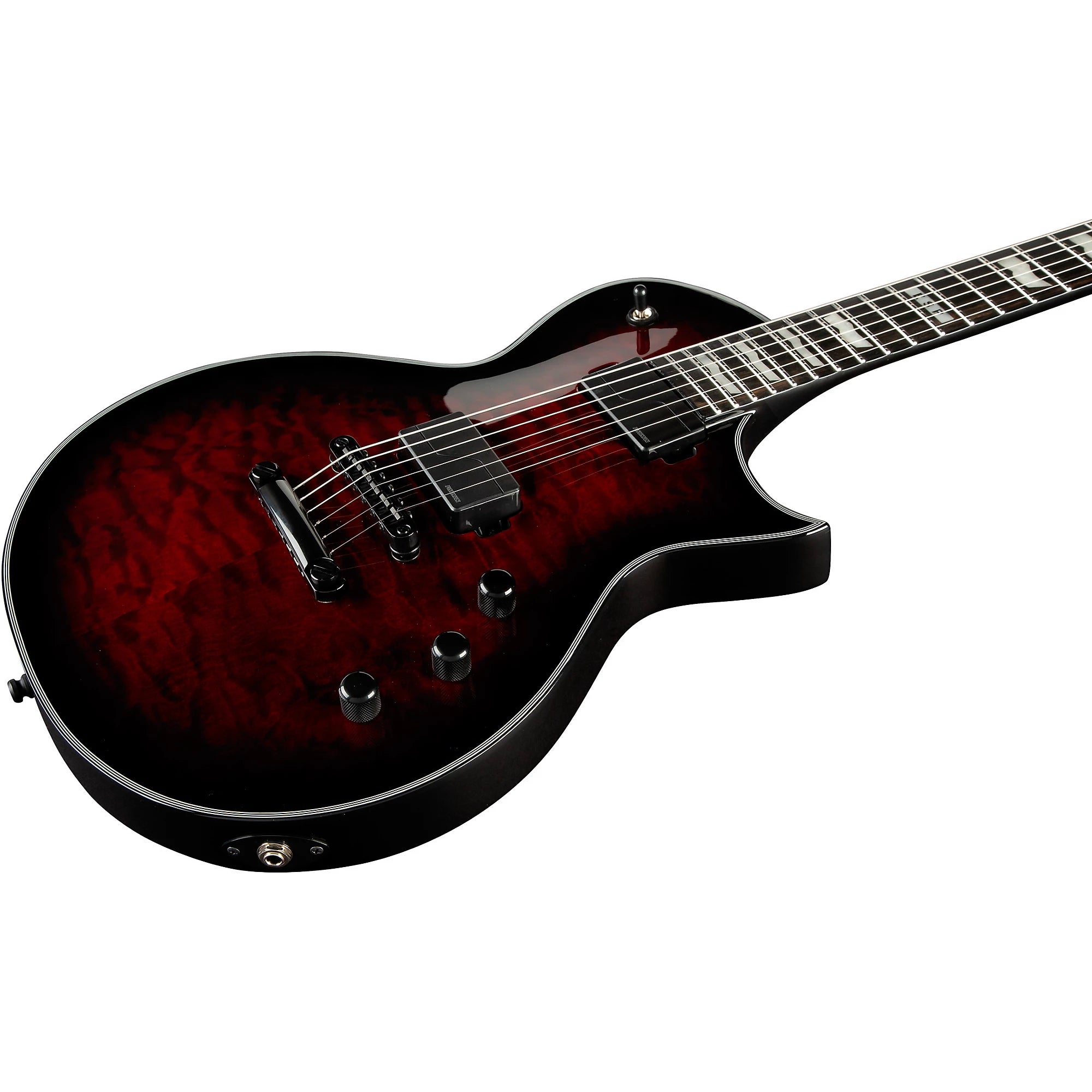 If you’re looking for a value-packed guitar that will deliver much more than you expect for its modest price, the obvious answer is the LTD EC-256. A classic single-cutaway shape that's excellent for all musical styles and genres, the EC-256 is available in multiple finishes and offers features that you normally associate with high-end guitars, like binding on the body, neck, and headstock, and reliable set-neck construction. The EC-256 also features a mahogany body, a comfortable three-piece thin U-shaped mahogany neck, and a roasted jatoba fingerboard with ESP flag inlays and 22 extra-jumbo frets. This guitar features a set of our acclaimed ESP LH-150 humbucking pickups in the bridge and neck positions, now offered with new great-looking matte black covers and providing punchy, great tone for all genres of music. You also get the flexibility of single-coil tones controlled by a push-pull switch on the tone knob.