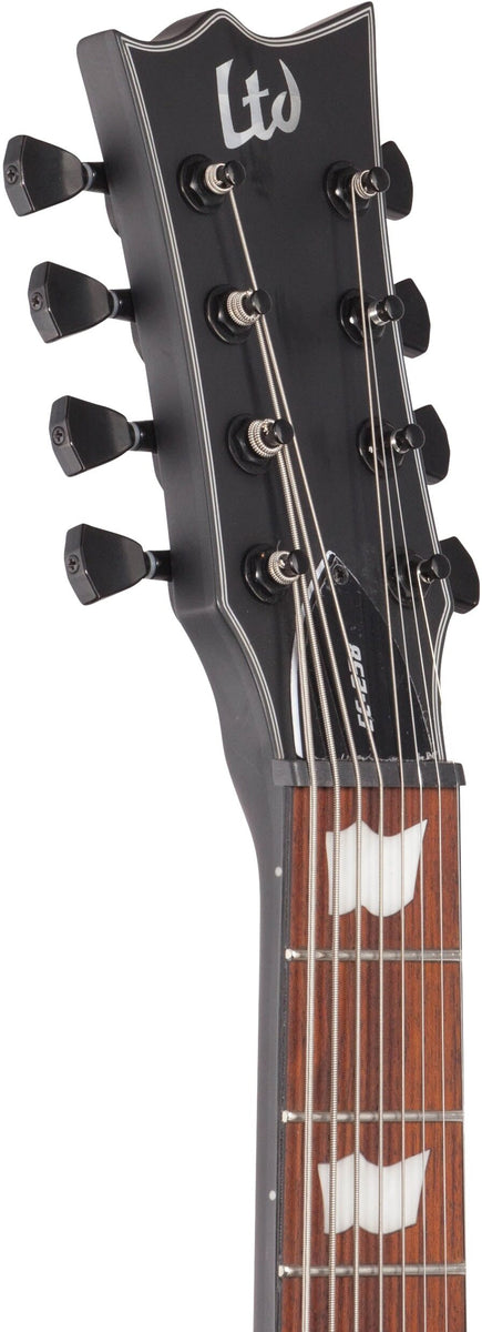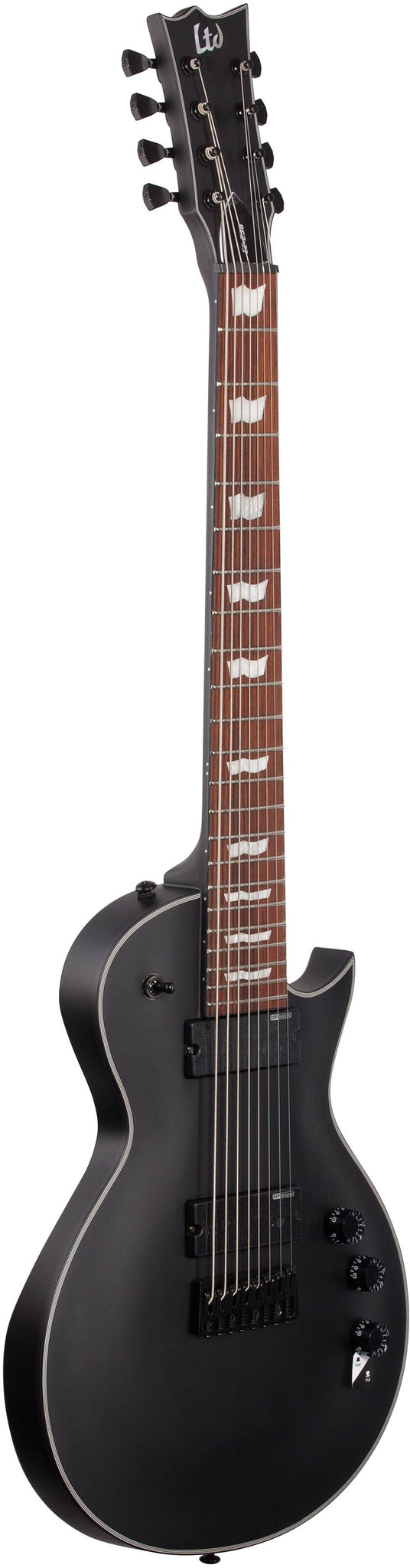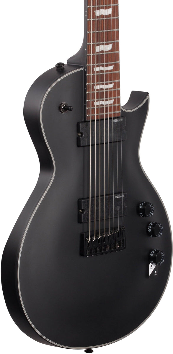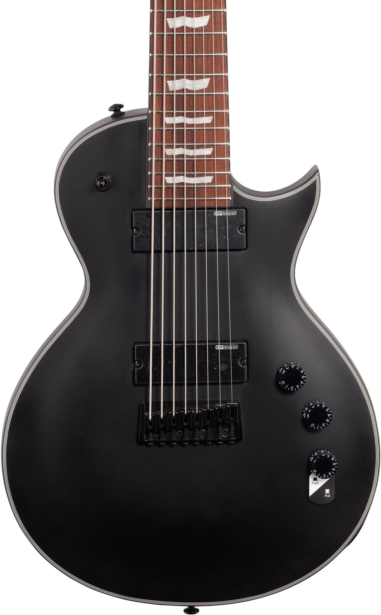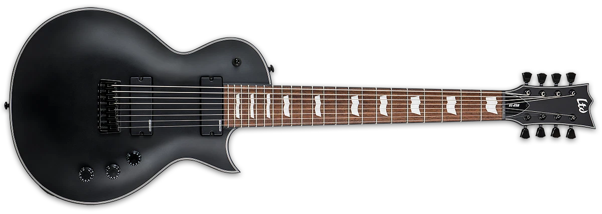 Extended range guitars don’t have to cost an arm and a leg to be great. The LTD EC-257 (seven-string) and EC-258 (eight-string) guitars are affordable for just about any musician, and allow you to explore the depths of lower pitches for today’s modern sounds in metal, progressive rock and more. The EC-257 features a set of acclaimed ESP Designed LH-150 pickups, with a push-pull coil tap on the tone knob, and a TOM bridge and tailpiece. The EC-258, outfitted with a hardtail LTD fixed bridge, includes ESP Designed LH-308 pickups for this 8-string guitar that goes all the way down to F# in standard tuning. Both guitars offer comfortable mahogany bodies, three-piece mahogany necks, and roasted jatoba fingerboards with 22 extra-jumbo frets. Both are available in Black Satin finish.