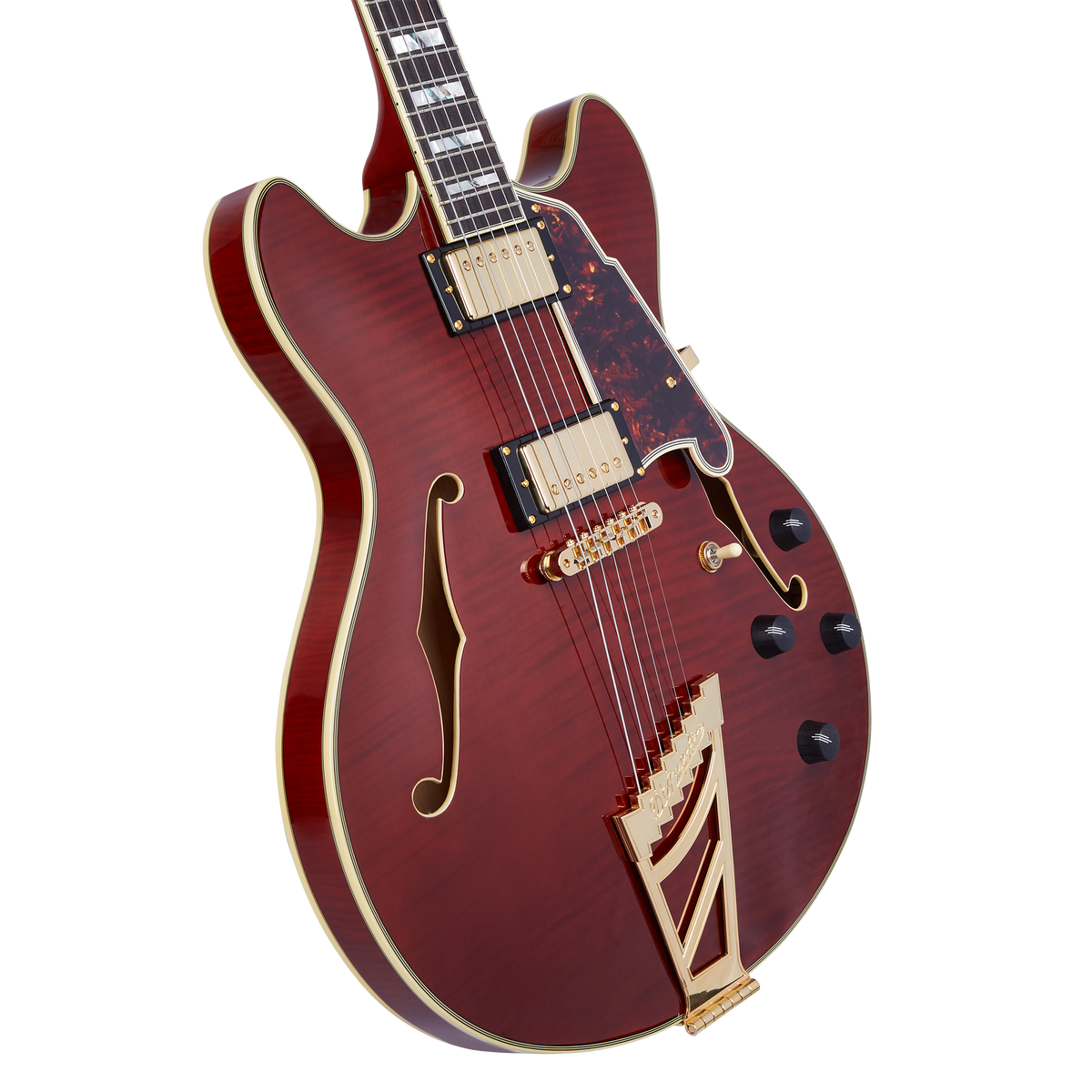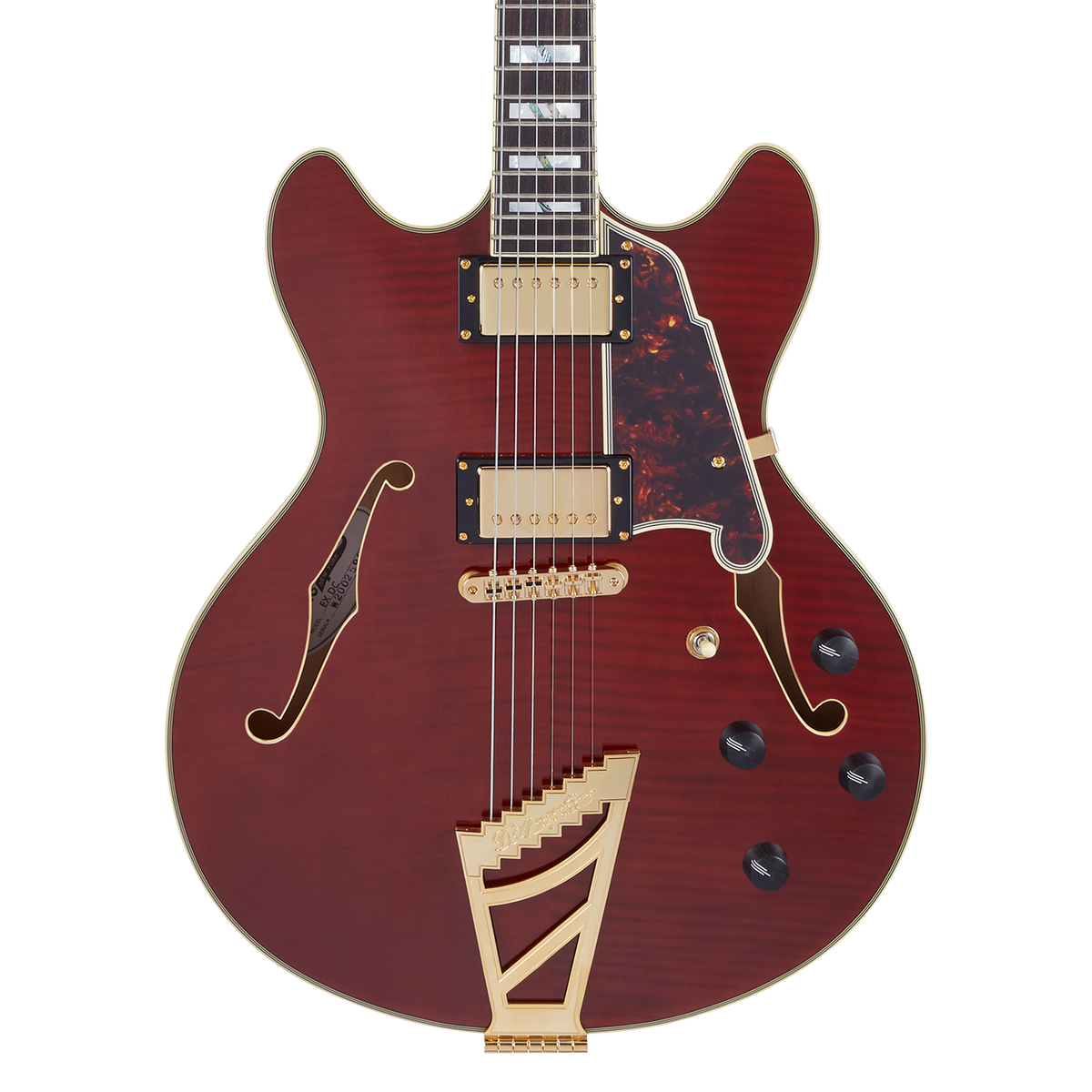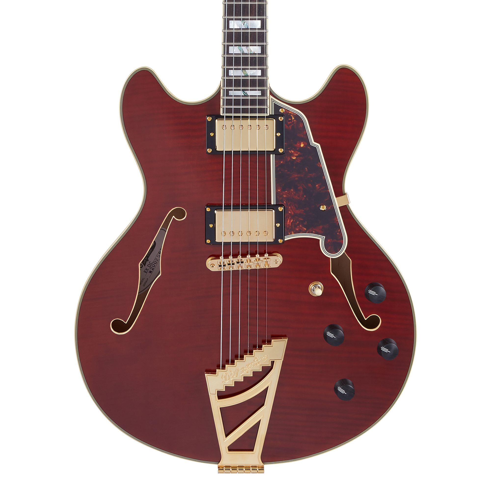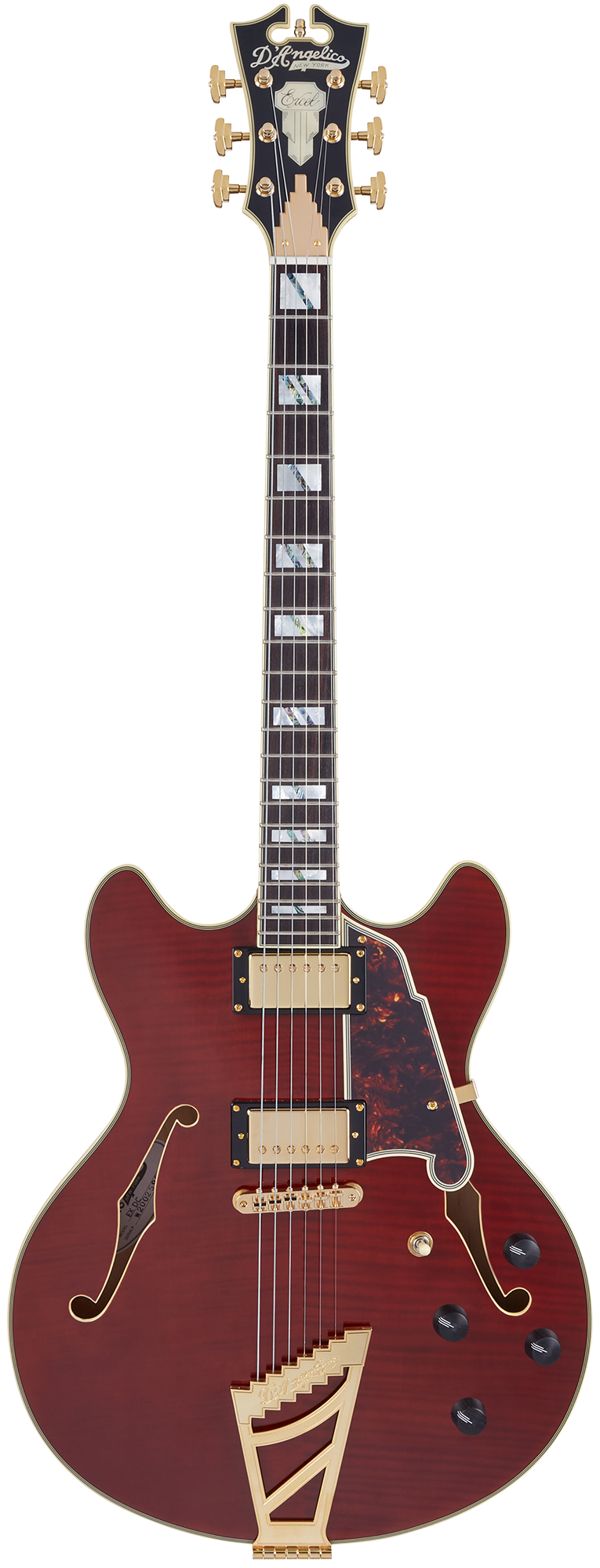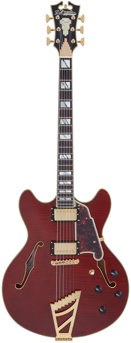 The Excel DC is a standout double-cutaway semi-hollow offering classic tones and modern versatility. With deep, comfortable cutaways and a slim C-shape neck profile offsetting its 16-inch-wide body shape, the Excel DC's playability is remarkable. Seymour Duncan 59 humbuckers provide an impressive tonal range of vintage-voiced warmth to glassy high-end, while its center block fights off feedback at high volumes. Now featuring a rosewood fingerboard, Jescar 47104 fretwire, and vintage-inspired Grover Imperial tuners. Now available in Vintage Natural, Viola, Black Dog, Solid Black, and Trans Cherry.