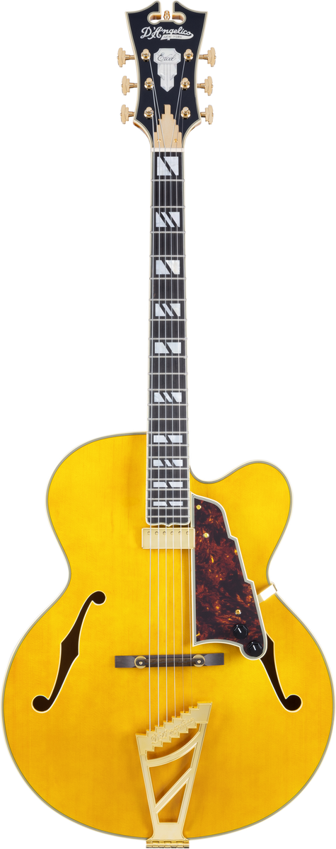 The flagship archtop in the D'Angelico line has returned—now in two colorways with two different pickup configurations. Inspired by John D'Angelico's single-cutaway "Excel" model that was first introduced in 1947, the Excel EXL-1 offers woody, articulate tone, ideal for both rhythm and lead playing. Featuring a redesigned neck shape, the EXL-1 promises the perfect balance of comfort and heft, still prioritizing remarkable mobility but also offering improved handfit. A full-sized Seymour Duncan 59 humbucker yields broad tone with singing sustain, while a Johnny Smith Floating Mini-bucker offers woody, focused tone that prioritizes body top resonance. Features include Grover hardware, an ebony fingerboard, and Jescar fretwire. Available in Dark Iced Tea Burst and Amber.