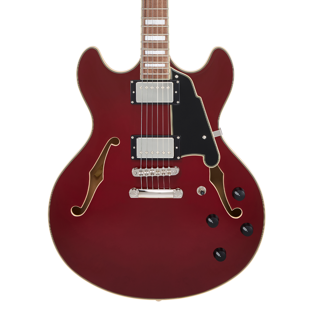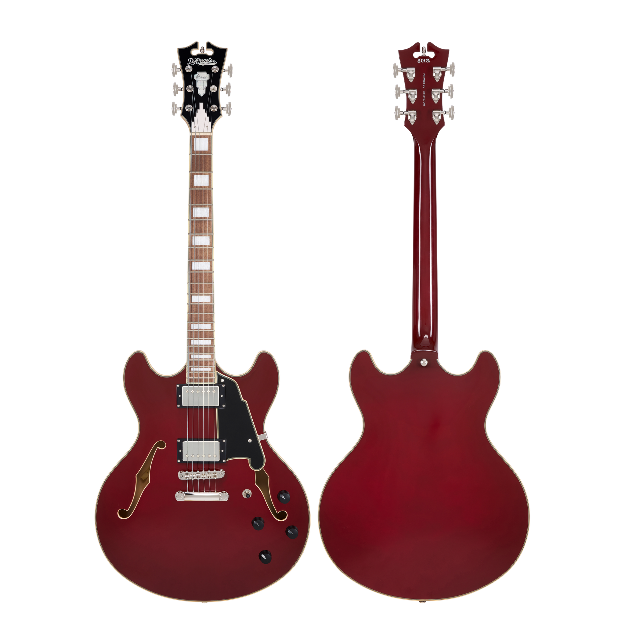 Equal parts modern and classic, the Premier DC is a versatile double-cutaway semi-hollow offering a huge range of tones. Custom-voiced humbuckers provide sweet, focused mid-range and vivid high-end, yielding balanced and bold tone. The DC's 16-inch-wide body offers remarkable sustain while a modern, slim-C neck shape with a seamless heel transition offers standout comfort. Equally suited across genres, the Premier DC's tones are as diverse as they are rich—from round, clean jazz to bright, searing rock. Four ebony knobs allow for fine-tuning tone. Now available in Brown Burst, Dark Iced Tea Burst, Solid Black, Burnt Red, and Surf Green.