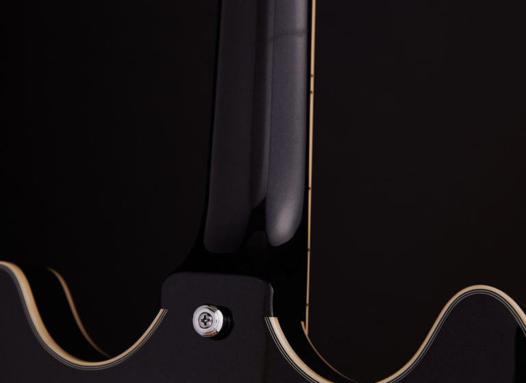The Premier DC’s slim C-shape neck, quicker fingerboard radius, and 1 11/16″ nut width make it easy-to-wield and a joy to play.