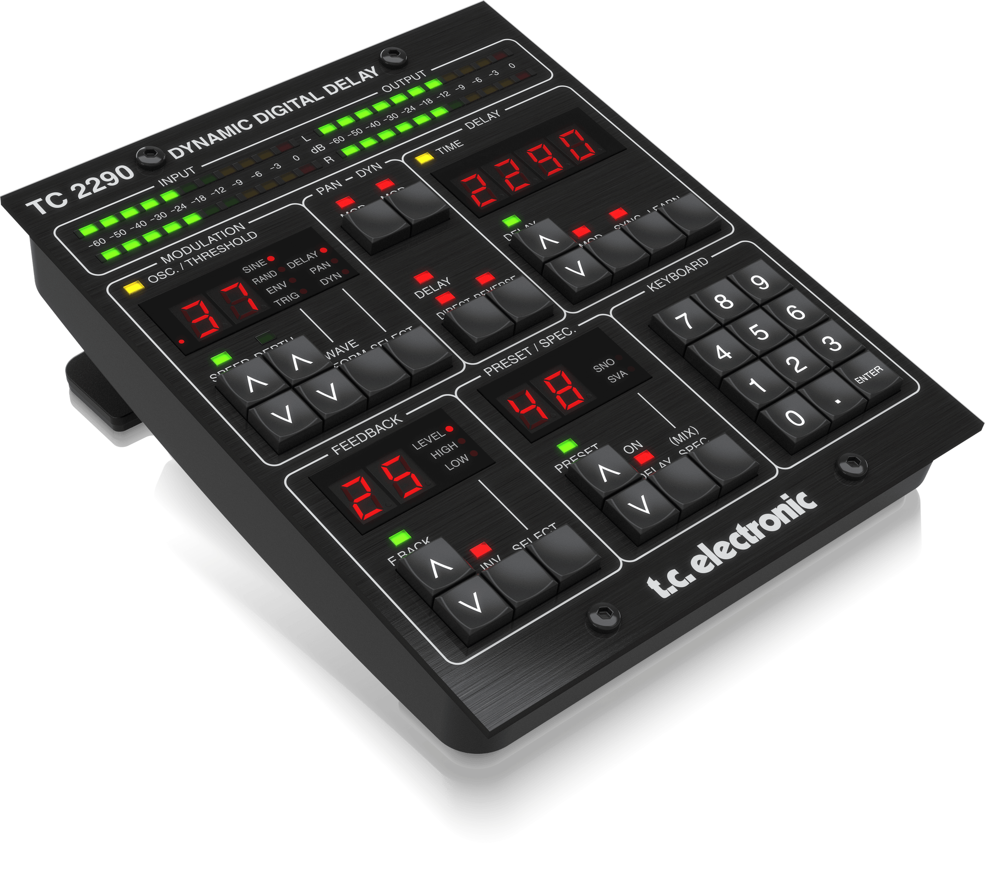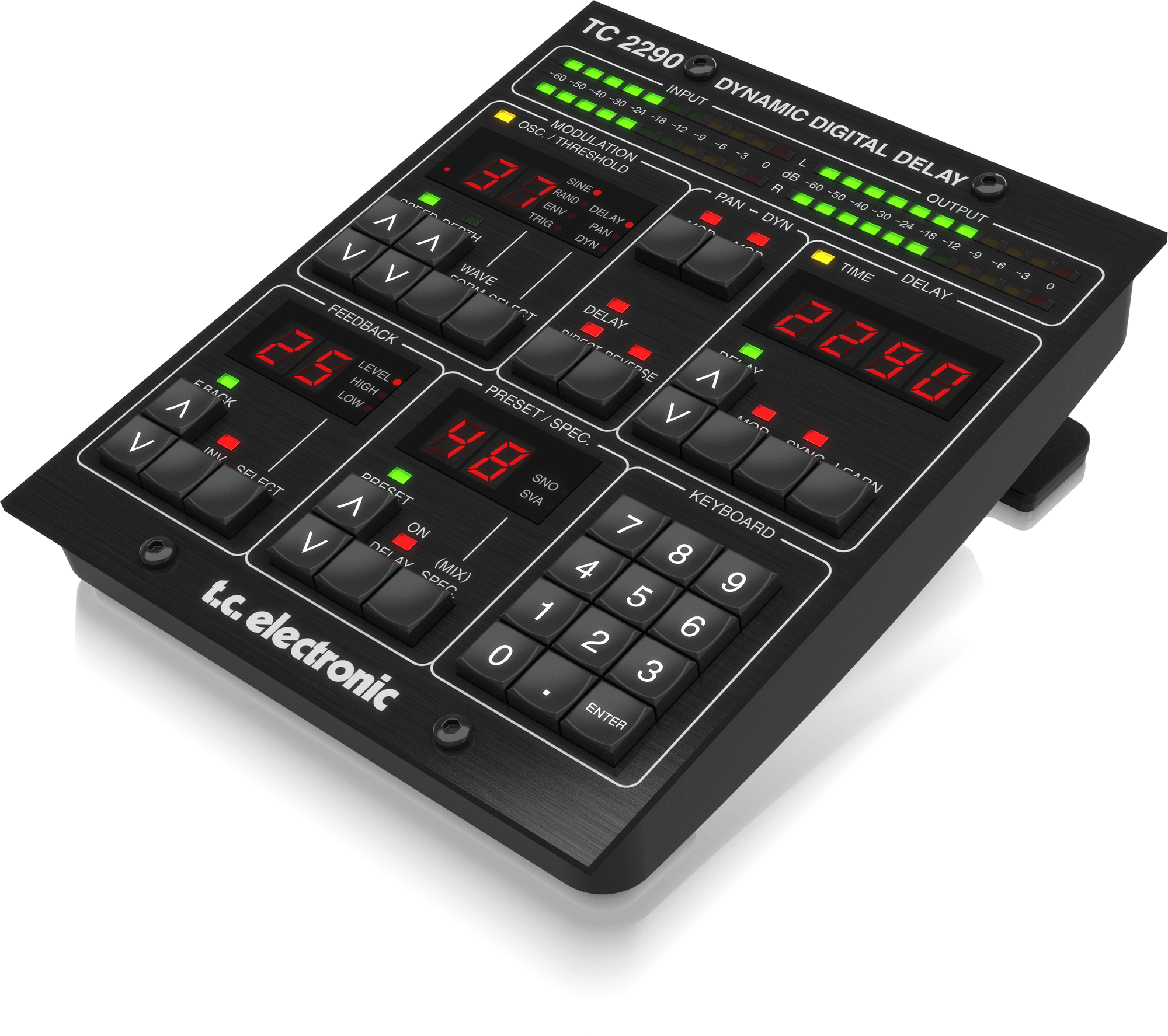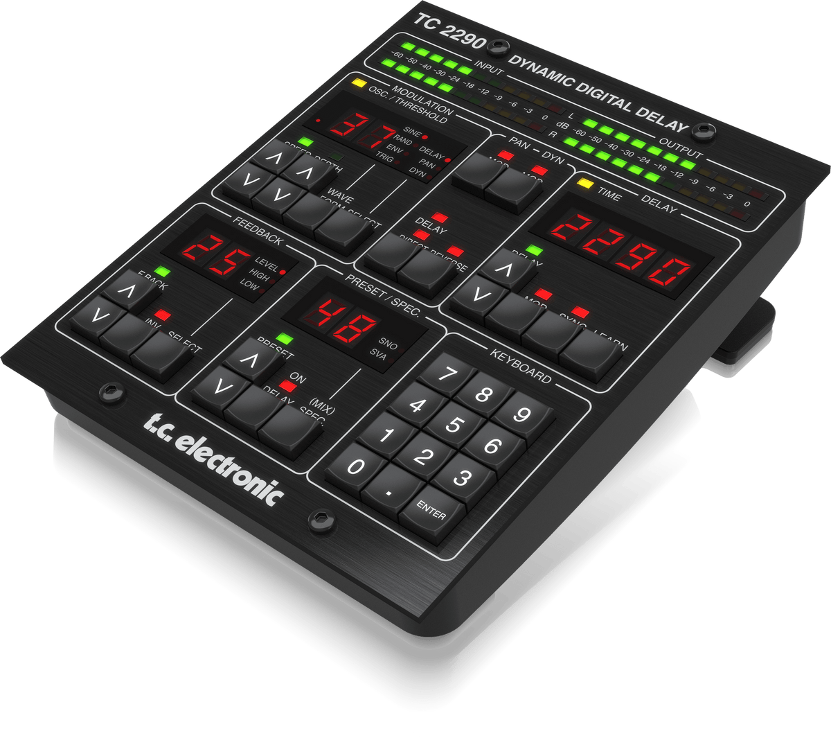 The optional hardware add-on for TC2290 provides high-resolution input and output meters for accurate signal monitoring directly on the interface, plus all tone-defining parameters including delay time, feedback level, modulation, mix settings and much more.