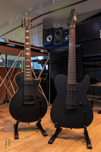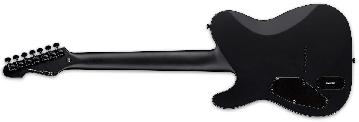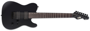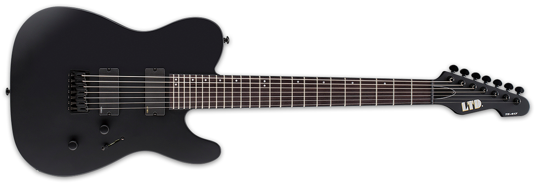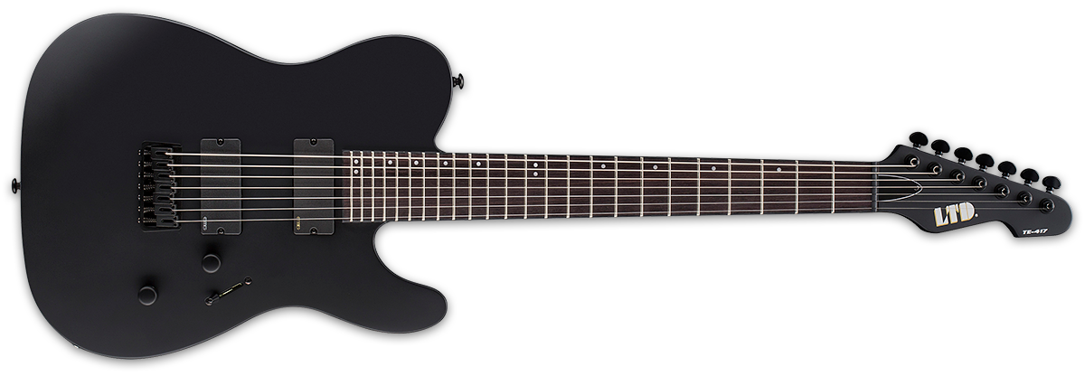For classic looks and modern performance, the ESP LTD TE-407 guitar has a single-cutaway shape, active EMG 81-7/707 pickups, and a seven-string design. Along with a mahogany body and bolt-on maple neck, it features a rosewood fingerboard with 22 extra-jumbo frets on a 25.5-inch scale. The Black Satin finish adds sinister appeal, with matching hardware that blends stealthily into the backdrop.