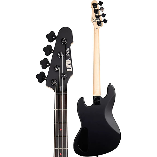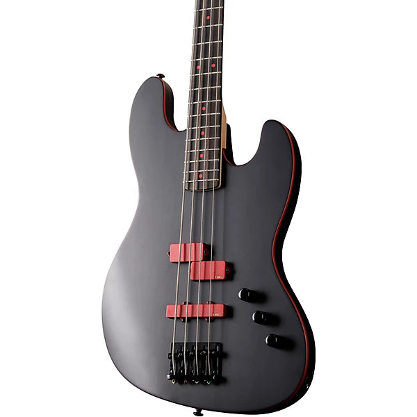 Anthrax bass player Frank Bello wanted to be sure that his LTD Signature Series bass was accessible to any bass player, not just limited to those who could afford a high-end instrument, so we created the FBJ-400, an excellent-quality bass built to Frank’s spec that’s very much within the budget range of most musicians. The FBJ-400 has classic design elements like a bolt-on maple neck with Macassar ebony fingerboard and glow-in-the-dark side markers on a mahogany body at 34” scale, and includes the excellent EMG P-HZ/EMG LJ-HZ pickups with red covers from his other signature models for sonic versatility. This bass also offers high-quality LTD vintage tuners and an LTD DB-4 bridge. Available in a great-looking Satin Black finish with red body binding and red fret markers.