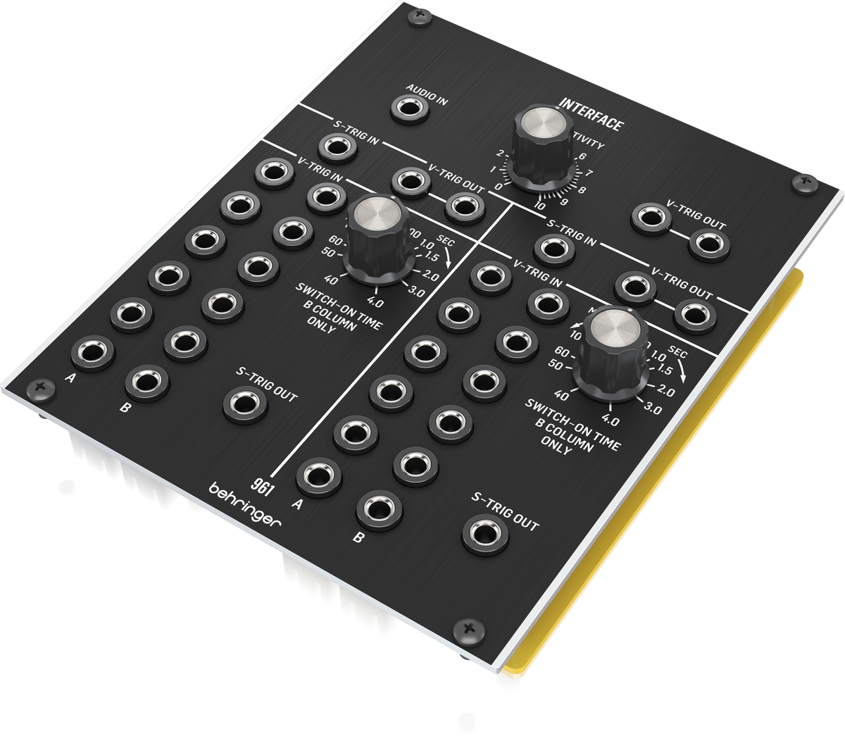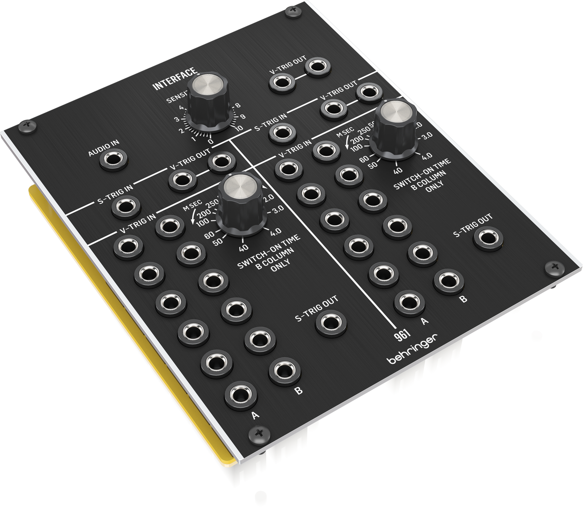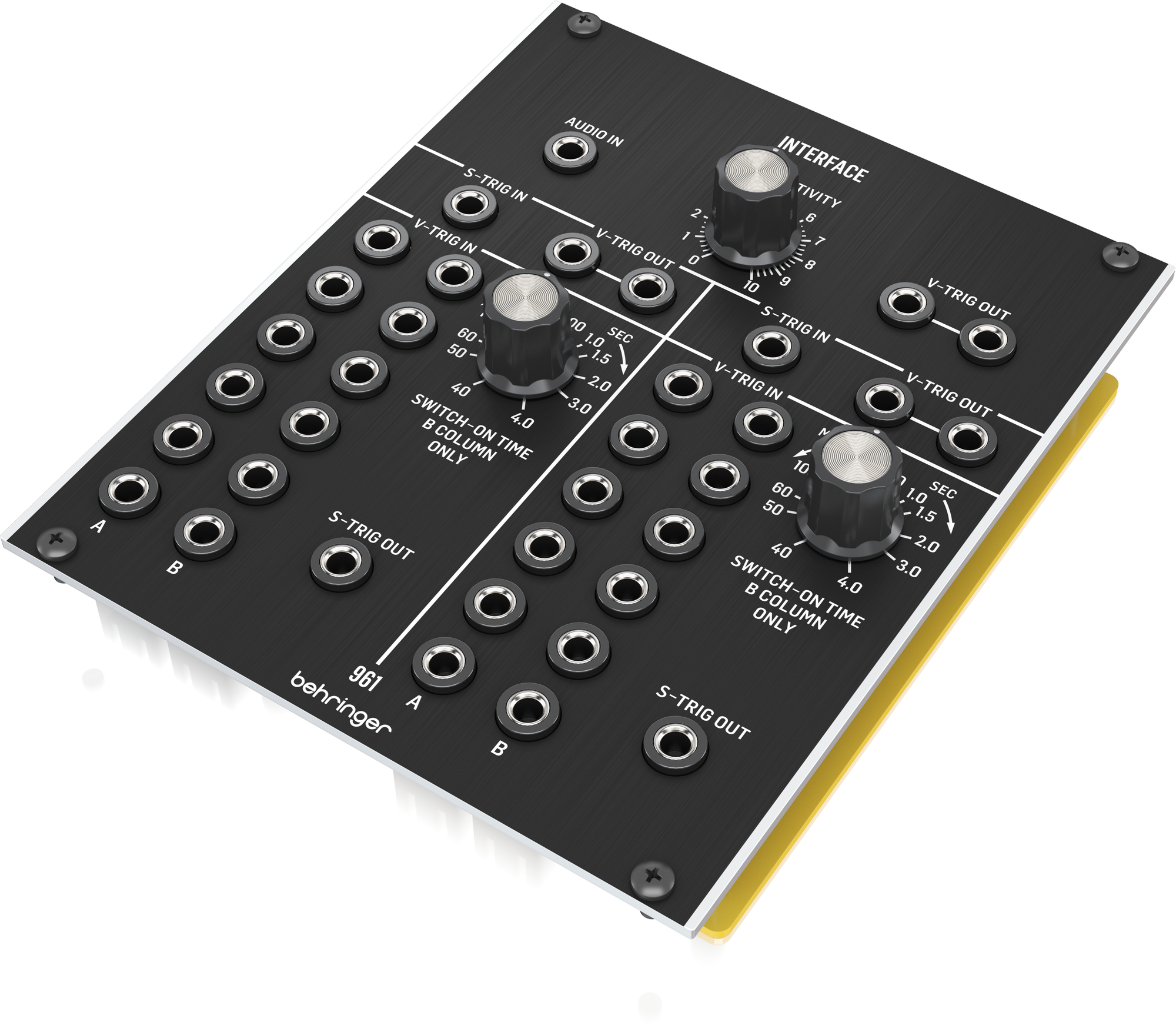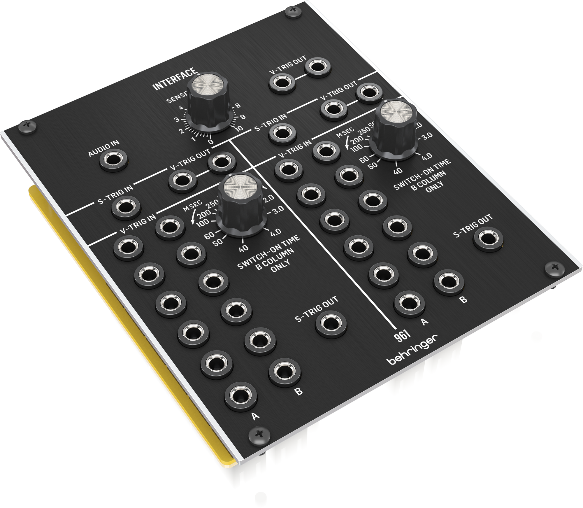 The 961 features an audio to V-Trig Converter, allowing you to plug in any audio source and transform it into a voltage trigger to drive other modules in your rig. Dual S-Trig to V-Trig and a multichannel V-Trig to S-Trig converters on the 961 can be utilized to switch or control a particular function on other modules.