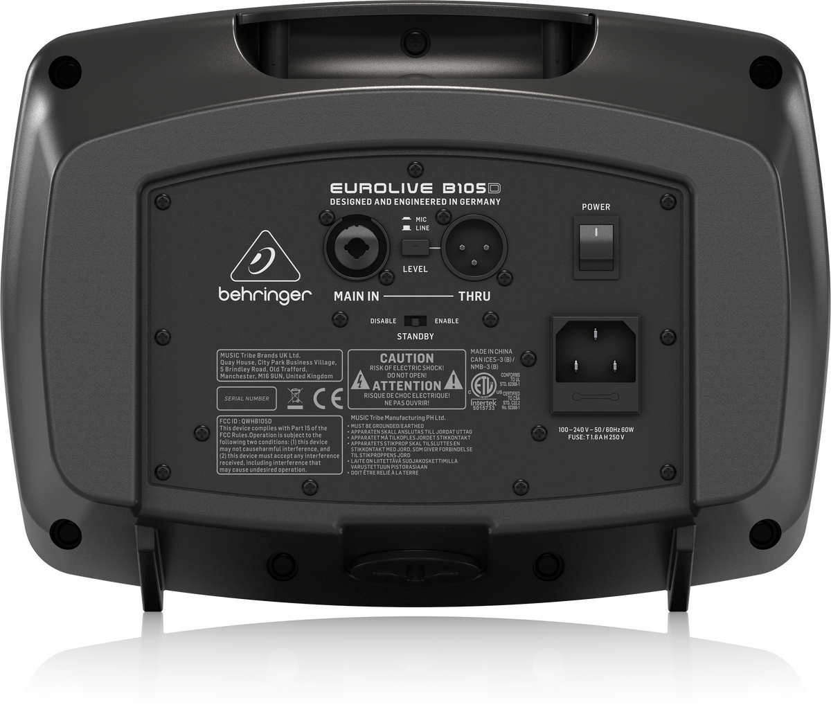 The B105D contains a dedicated stereo input for keyboards, MP3 and CD players. The Mic stand integration system (sold separately) allows the B105D to be mounted on any microphone stand or boom. In addition, the power section comes loaded with an internal switch-mode power supply for noise-free audio, superior transient response and very low power consumption. This speaker is built super-tough and has an impact-resistant enclosure with an integrated carry handle for quick and easy transport.
