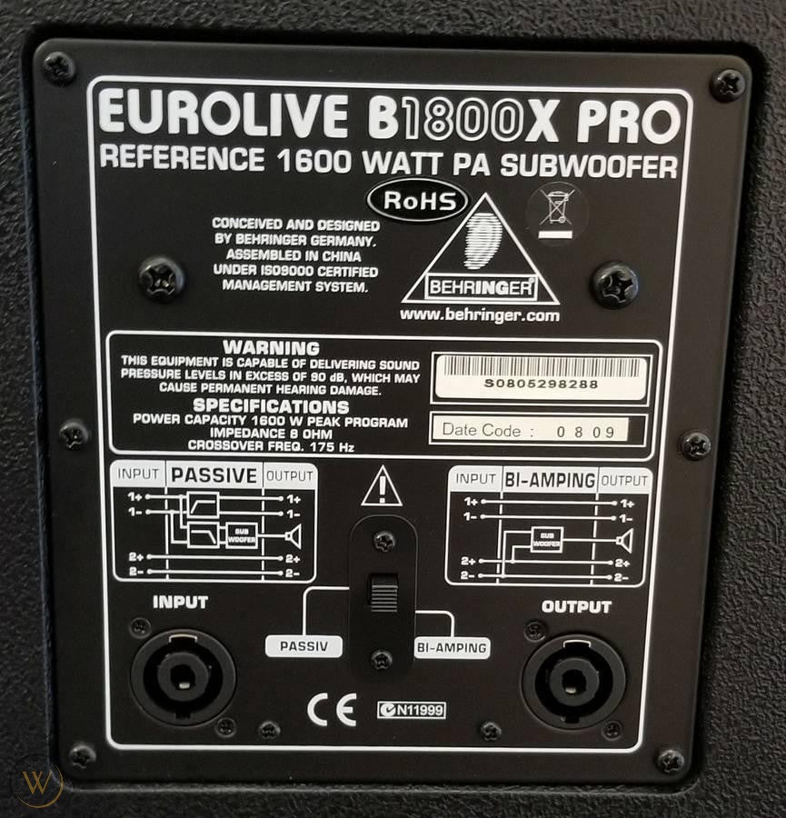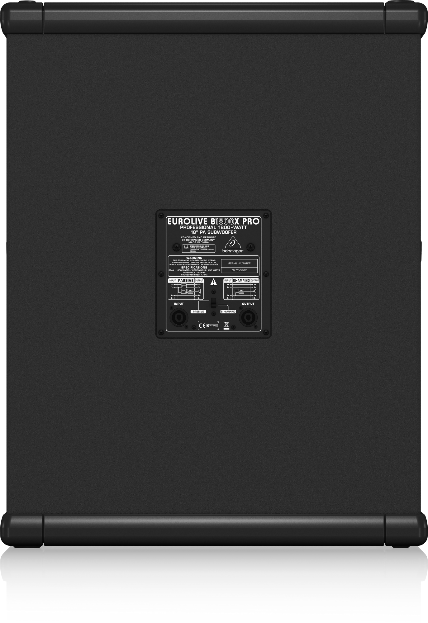 The EUROLIVE B1800X PRO subwoofer is exactly what you’ve come to expect from BEHRINGER – 1,800-Watt power handling capacity, more features and absolutely more affordable! And thanks to the extremely powerful, long-excursion 18" Low-Frequency (LF) driver in a tuned enclosure, the B1800X PRO provides rich, tight bass all the way down to 40 Hz – enough to shake the house right down to its foundation. The B1800X PRO is destined to become a legend in its own right, alongside the other EUROLIVE models that have made BEHRINGER the world leader in subwoofers and loudspeakers.