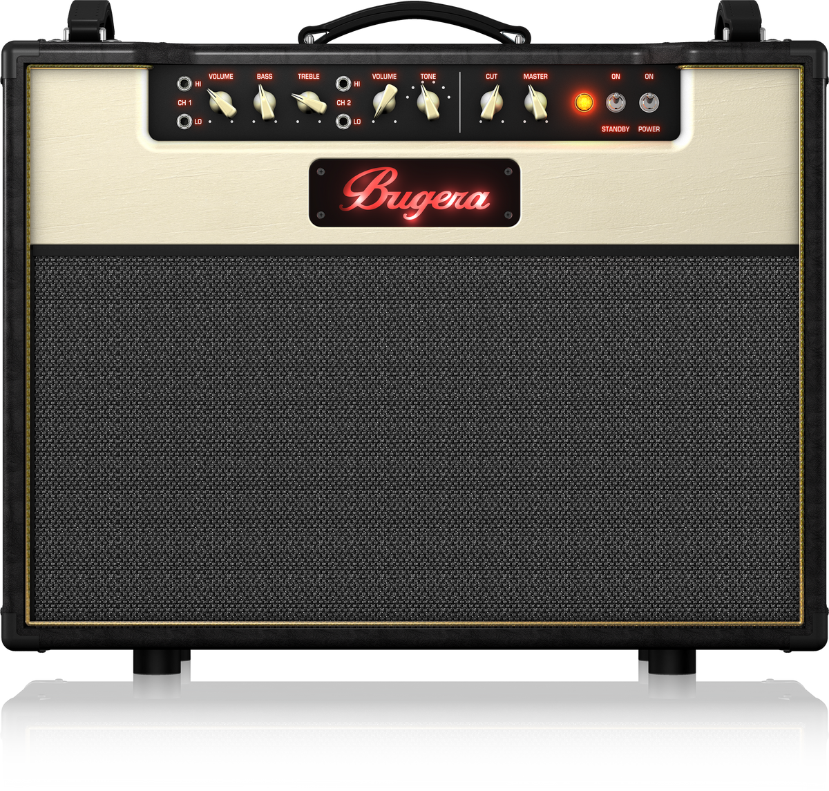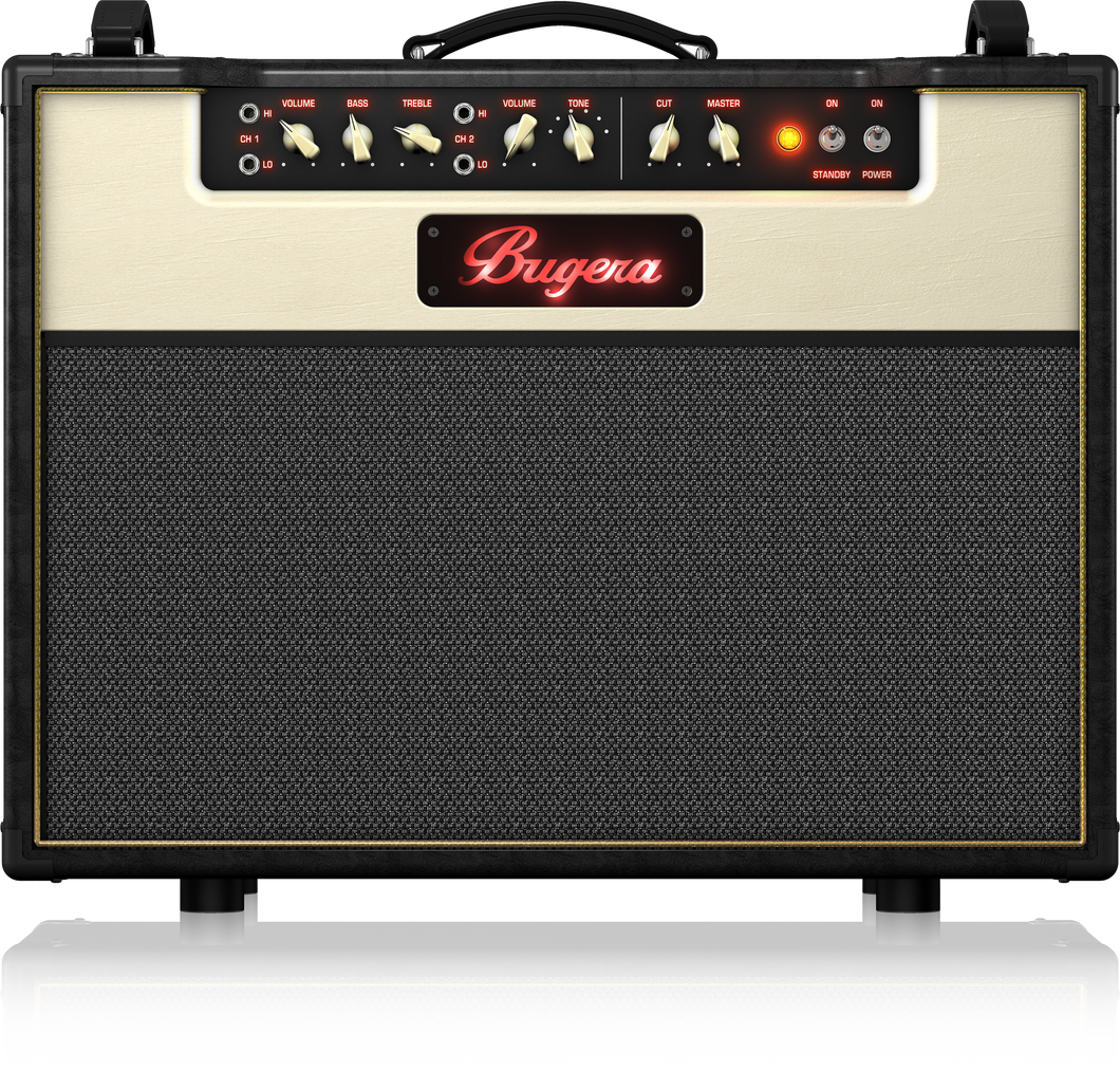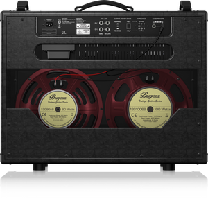 Two-channel operation gives the BC30-212 vast tone-shaping capability, providing everything from CH 1’s twin-path 12AX7 clean tones – to CH 2’s outrageous high-gain distortion. The accompanying 6-position tone switch allows you to fine-tune the characteristics of CH 2, whether you like it mild – or wild. You can even patch the two channels together for added tonal versatility. All of this amazing tone is supplied to the dual onboard 12" BUGERA speakers, each of which have unique tonal characteristics – for an incredibly-fat sound!