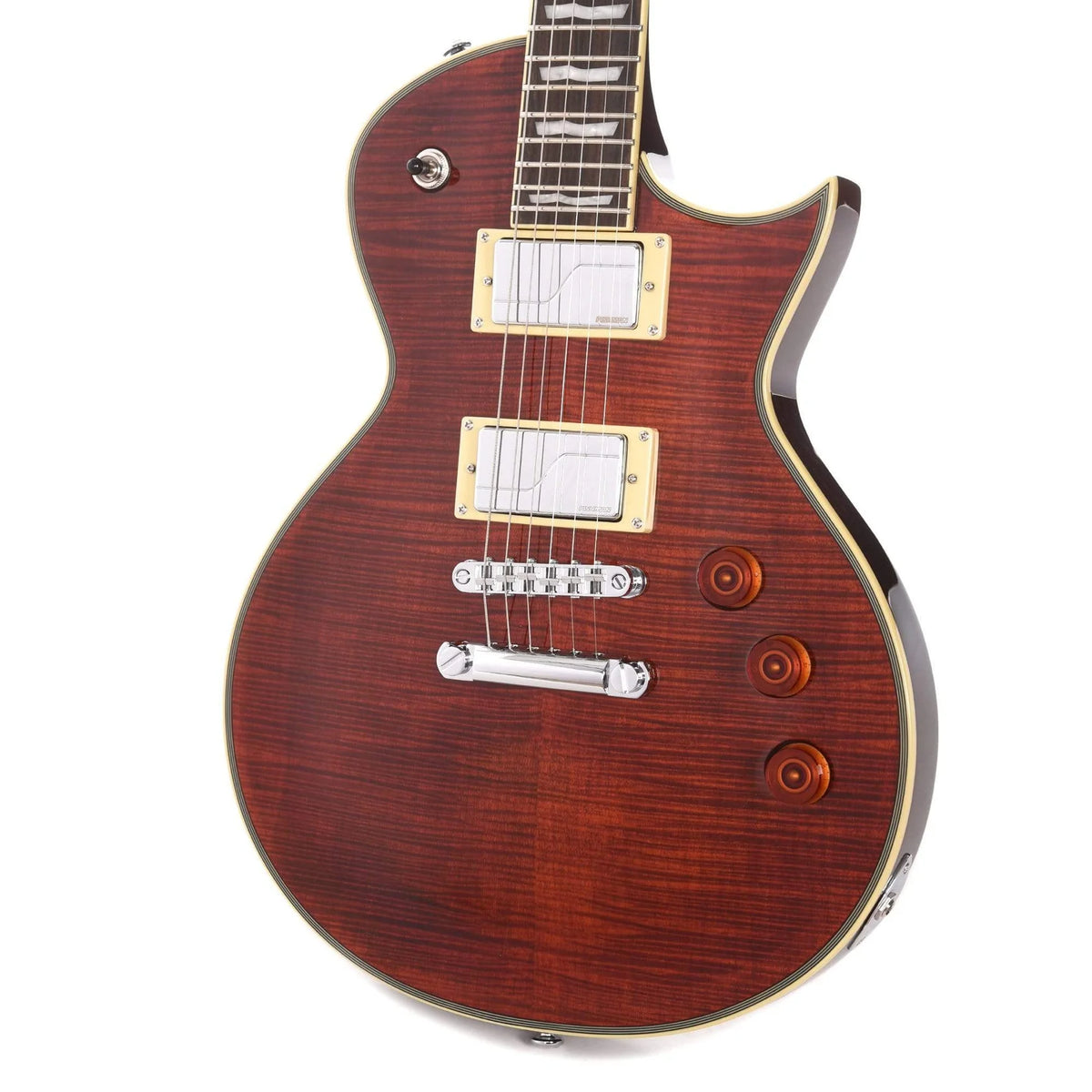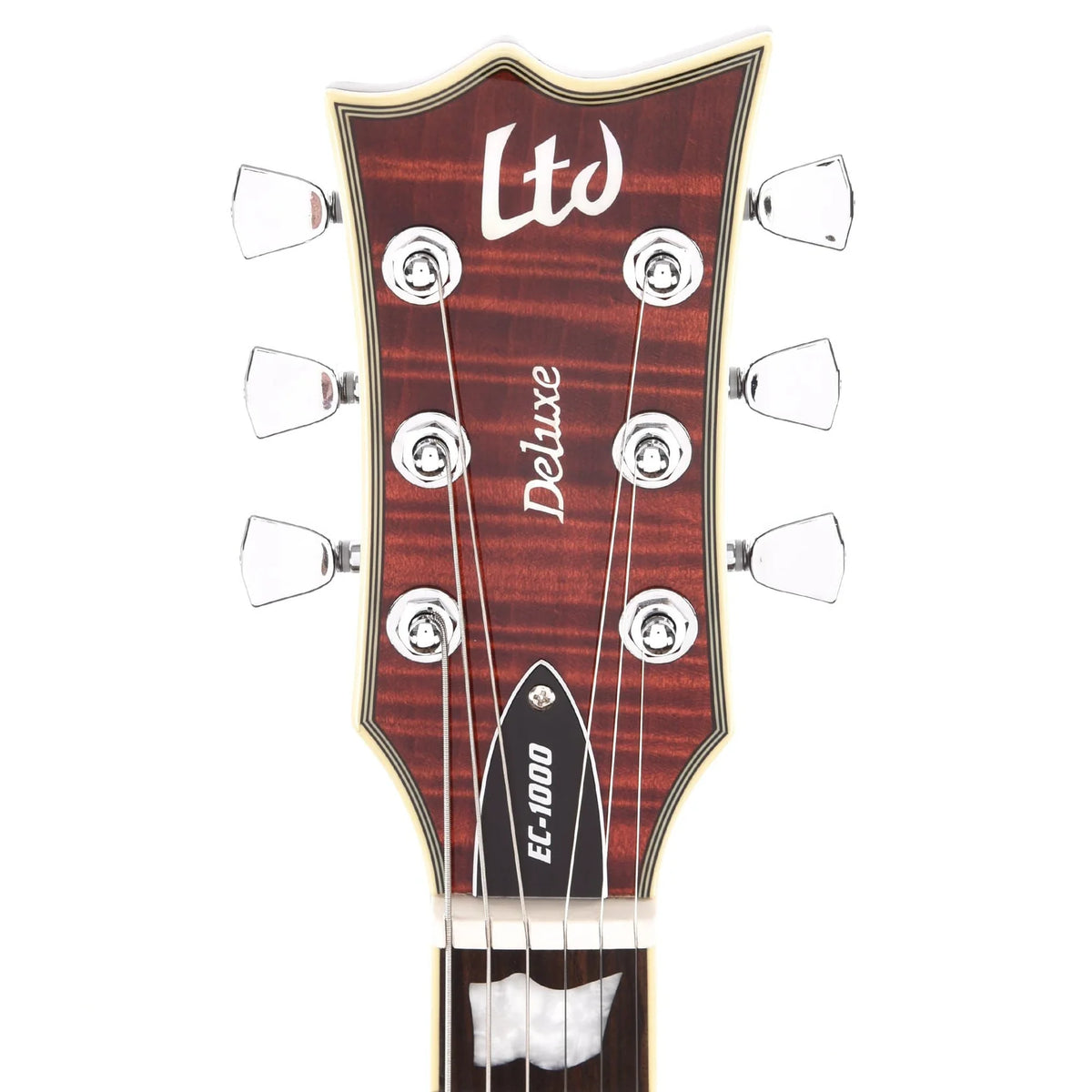 Guitars in the LTD 1000 Series are designed to offer the tone, feel, looks and quality that working professional musicians need in an instrument. With the EC-1000FM Fluence, you get the great look and feel of the single-cutaway design based on the ESP Eclipse along with Fishman’s innovative Fishman Modern Humbucker pickup set for extraordinary versatility in tones. This model is available in Tiger Eye finish over an outstanding flamed maple top with binding on the body, neck, and matching headstock. It features a Macassar ebony fingerboard with 24 extra-jumbo frets, LTD locking tuners and a Tonepros locking TOM bridge and tailpiece. It also offers set-thru construction with a mahogany body and three-piece mahogany neck.