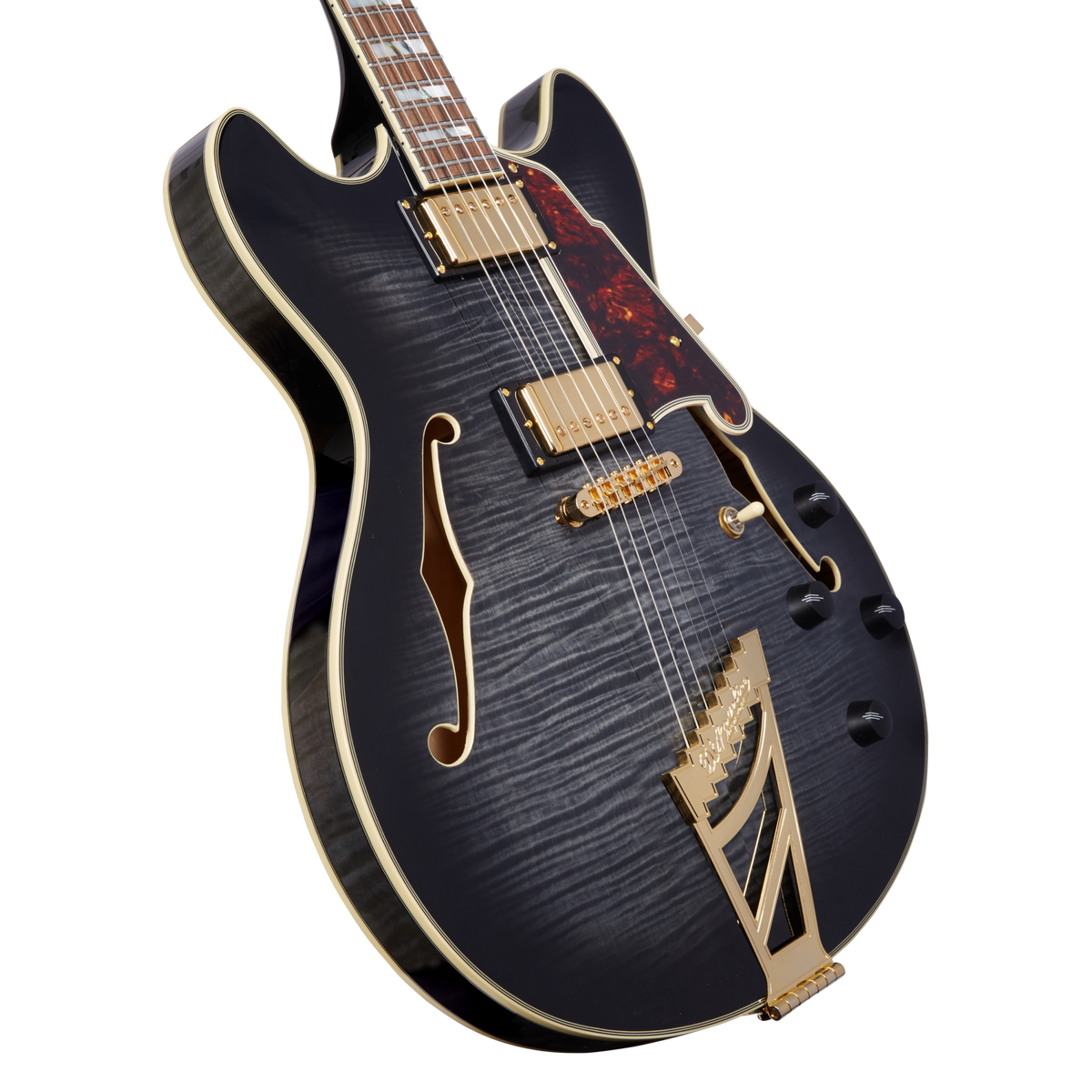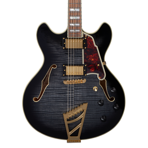 A 16-inch-wide semi-hollow with deep cutaways and a lightweight centerblock, the DC offers a massively wide range of tones and remarkable sustain.
