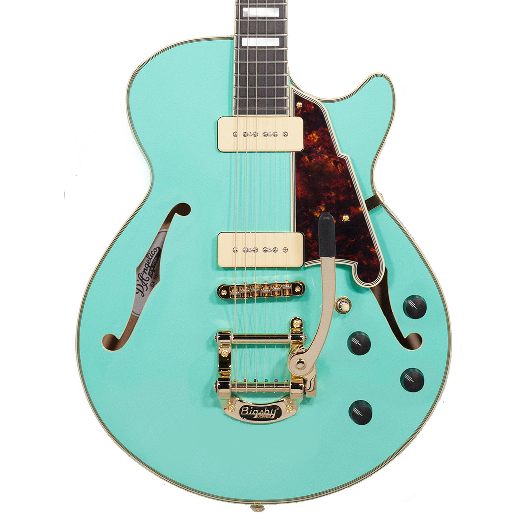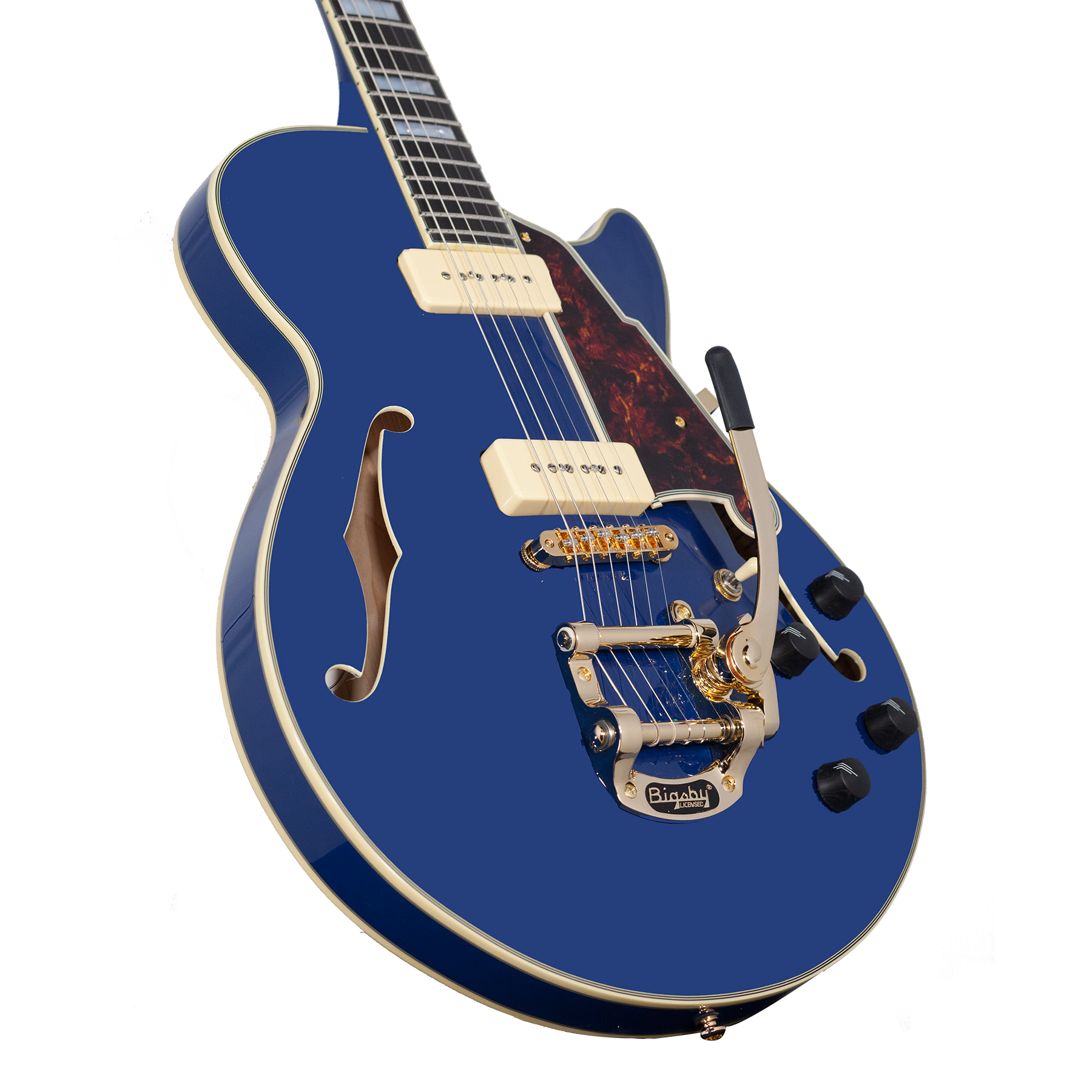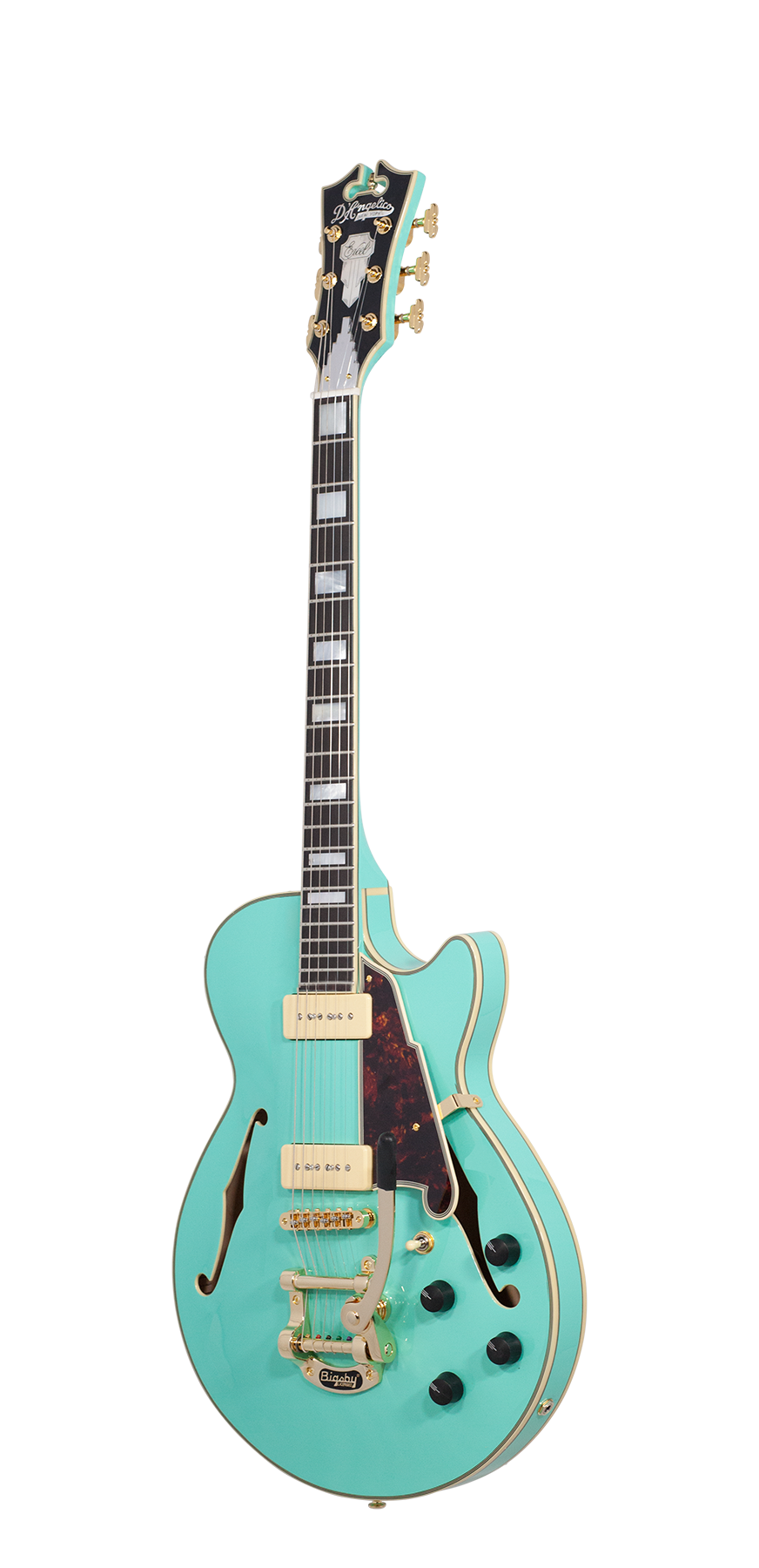 A striking gold Bigsby brings wavy vibrato with a roller bridge that guarantees stable tuning.