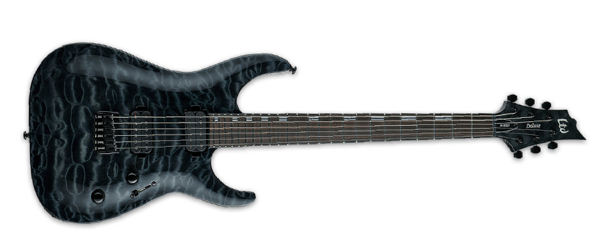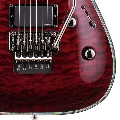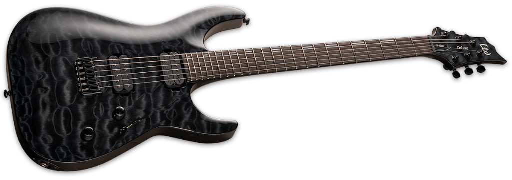 Guitars in the LTD 1000 Series are designed to offer the tone, feel, looks and quality that working professional musicians require in an instrument. The H-1001FR offers a mahogany body with a killer burled poplar top in Black Natural Burst finish, with a set-thru three-piece maple neck. It has a pair of high-output, direct-mount Seymour Duncan Sentient (neck) and Pegasus (bridge) passive pickups, splittable by a push-pull control. These pickups offer a wide dynamic range and excellent articulation, along with the aggressive responsiveness you want for today’s music. The H-1001FR also includes a Floyd Rose 1000SE bridge that features stainless steel screws for excellent stability and longterm reliability, as well as Grover tuners.
