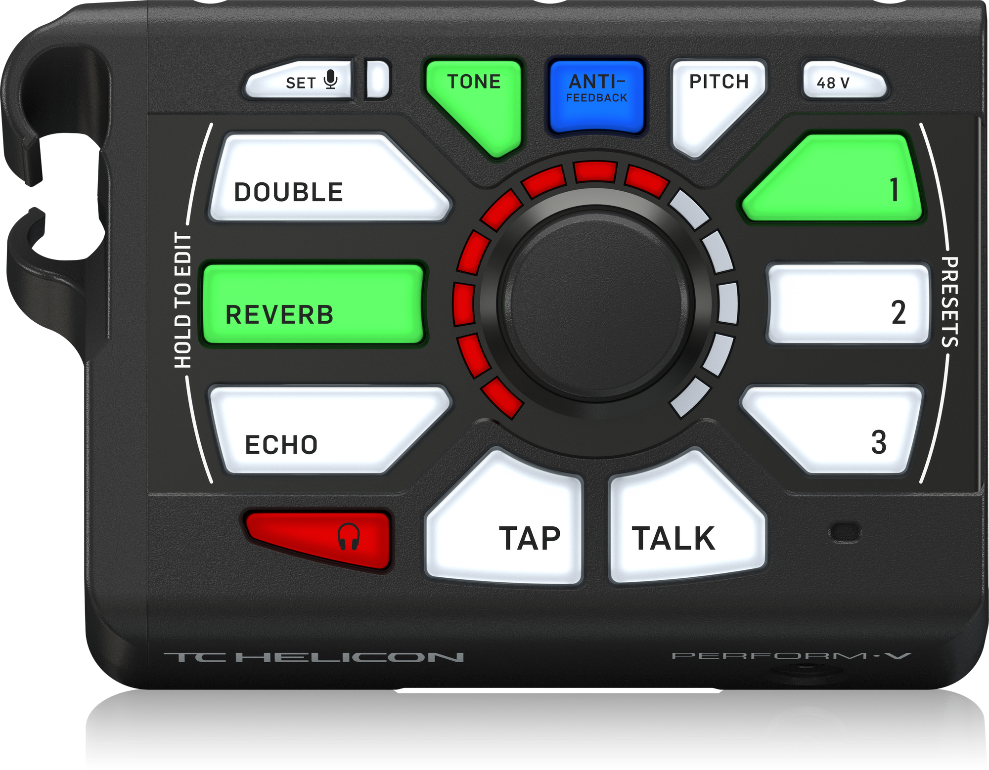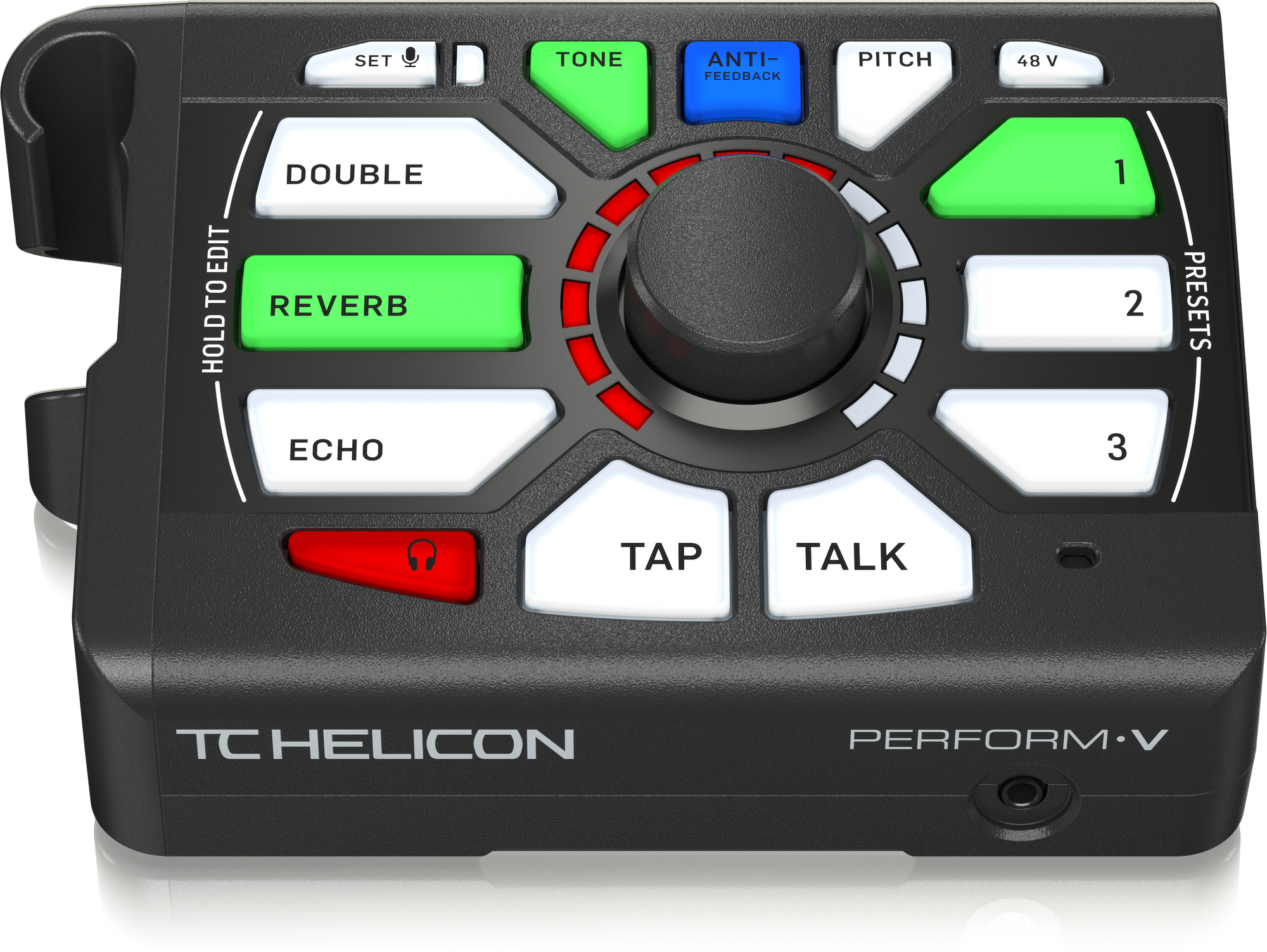 Crystal clarity for every word is the true power of PERFORM-V. It understands what suits your voice and shapes it for your audience. Pressing the TONE button automatically takes care of the business of making you sound better. If there is one magic trick inside PERFORM-V, this is it.