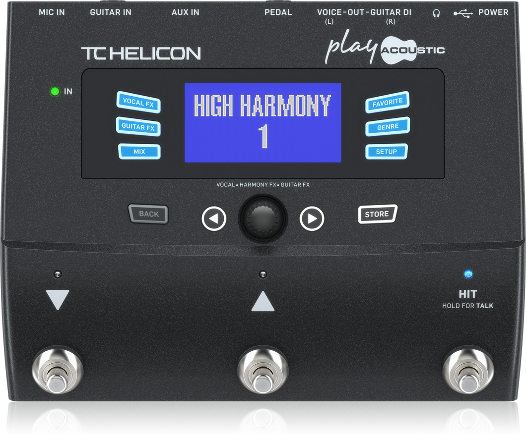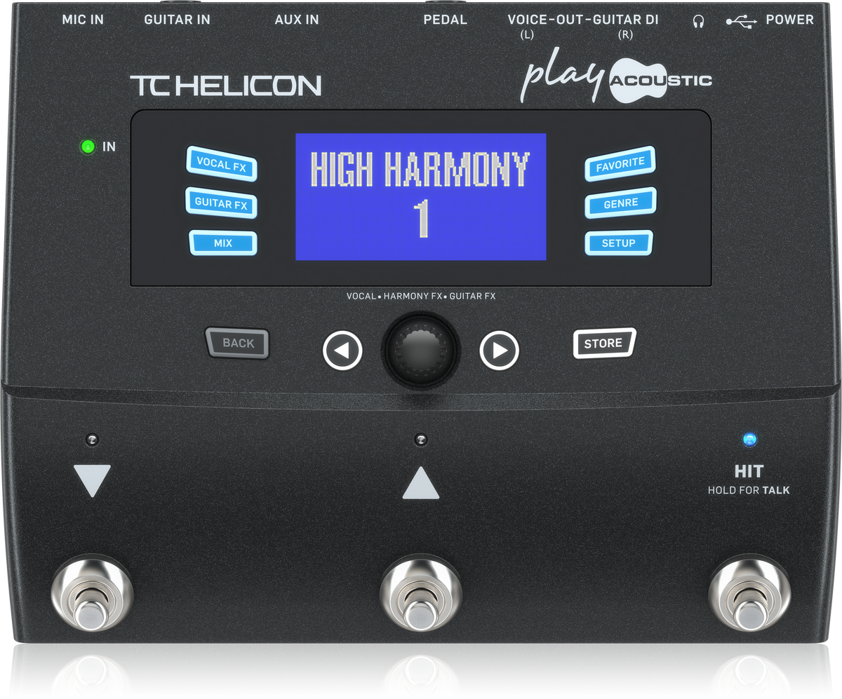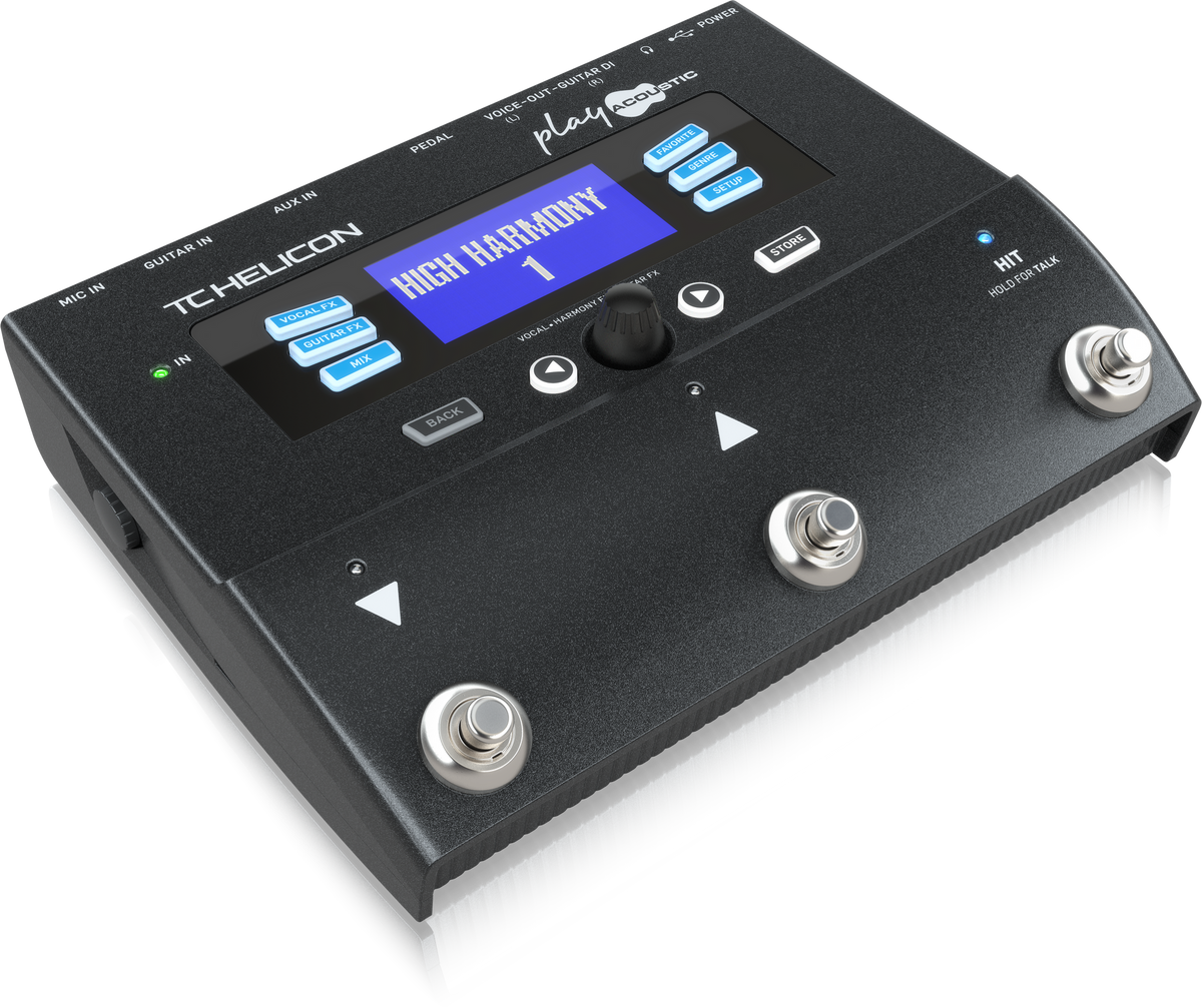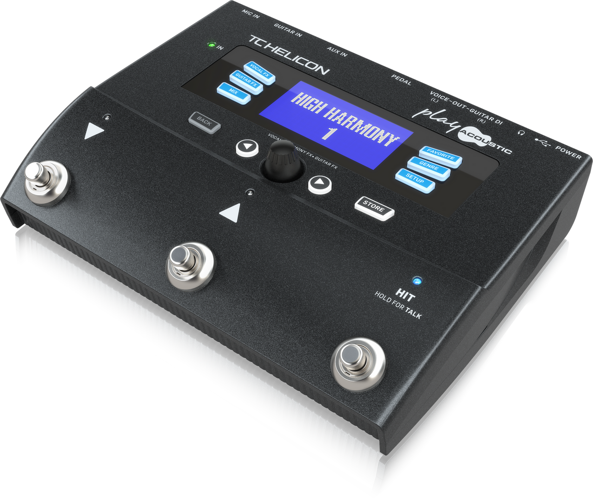 Navigating Play Acoustic is as straightforward as it gets. Use the Up/Down footswitches or central knob to easily browse factory presets, or use the GENRE button to find styles that you like. Dedicated VOCAL FX and GUITAR FX buttons let you access effects directly, and the intuitive user interface makes editing simple and fast. Create your own library of presets with the FAVORITE feature for easy setlist recall.