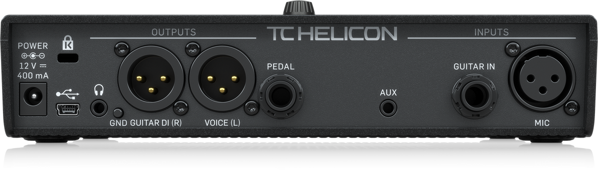 | Control | USB: USB-B (Preset Management, Firmware Updates and audio I/O) Pedal: 1/4? TRS phone jack Mic Control using TC Helicon MP-75 Microphone or Sennheiser e 835 FX mic. |