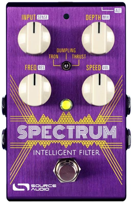 The Spectrum Intelligent Filter was designed with special attention given to the simple plug-and-play experience. Right out of the box the pedal offers easy access to tones inspired by some of the most iconic and difficult to find envelope filters effects pedals on the market. It also offers synth-like tones comprised of distorted octave and envelope phaser sounds. Because of the pedal's ALT button, the Spectrum's four knob control surface actually offers access to eight different parameters. Use the Spectrum's Input Gain, Sensitivity and Speed controls to dial in the perfect envelope response for your needs. Maybe you like a slow and smooth envelope movement while you really dig-in on the strings, or possibly you want a quick moving filter that responds to light picking - either way is achievable with the Spectrum. The Frequency, Resonance, Depth and Mix controls provide fine control over the color and character of your filter effects. Whatever your needs, the Spectrum is the most comprehensive filter effects pedal available.