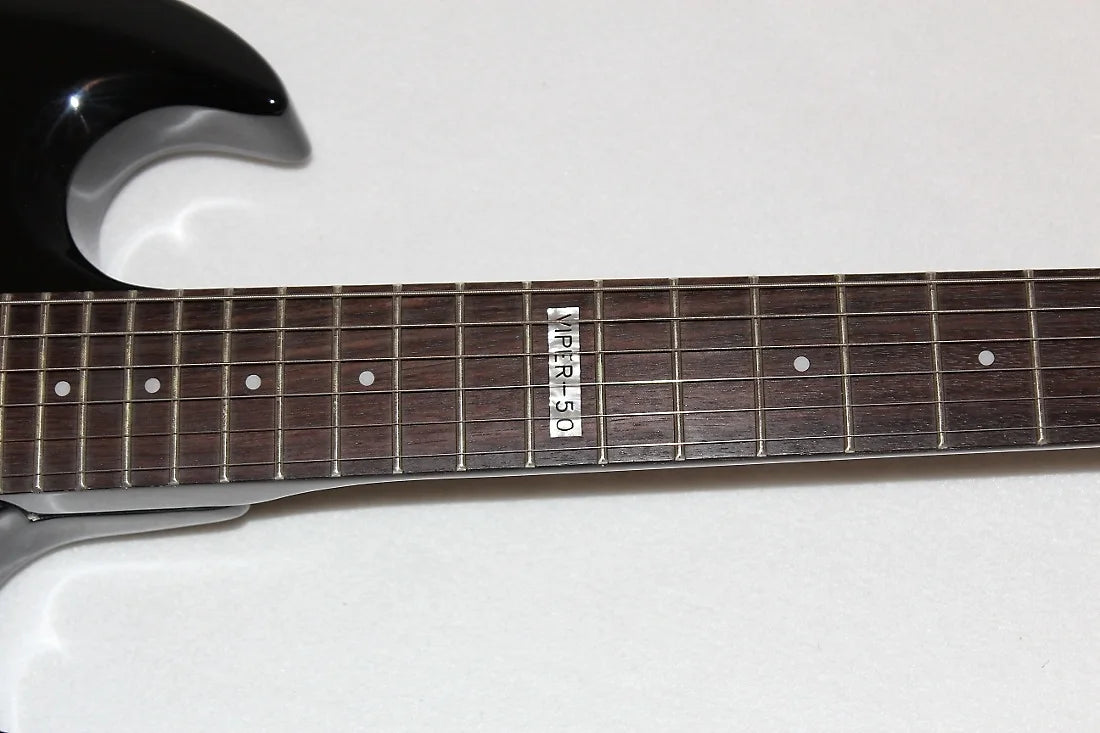 The ESP LTD Viper-50 Electric Guitar is all about playability. The dual ESP LH-150 pickups buck 60-cycle hum, making them much quieter than single-coil pickups and more powerful. The 24-3/4″ scale is slightly shorter than many electric guitars, making for less string tension and easier play. The LTD Viper-50 guitar’s basswood body and maple neck with rosewood fretboard promise superb stability and long life.