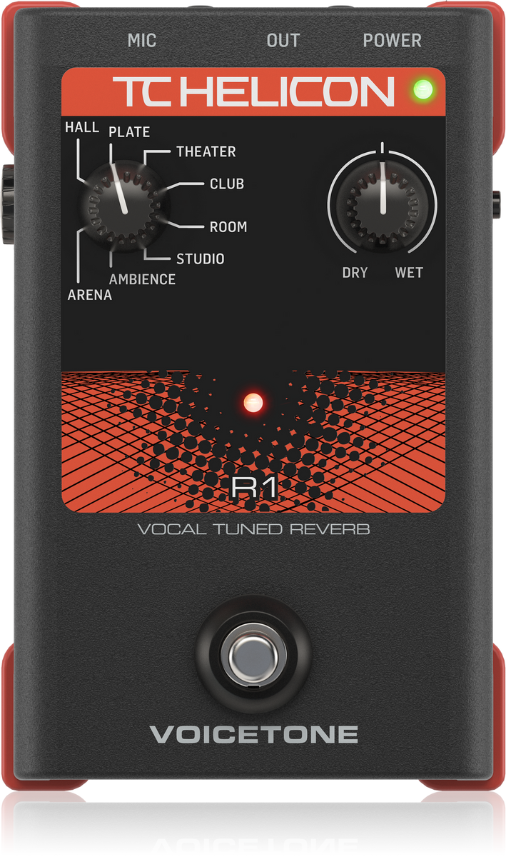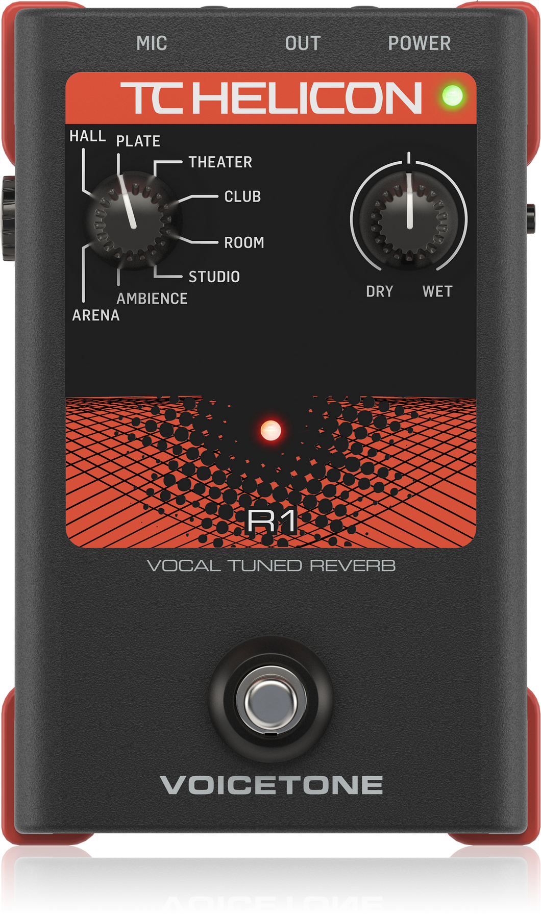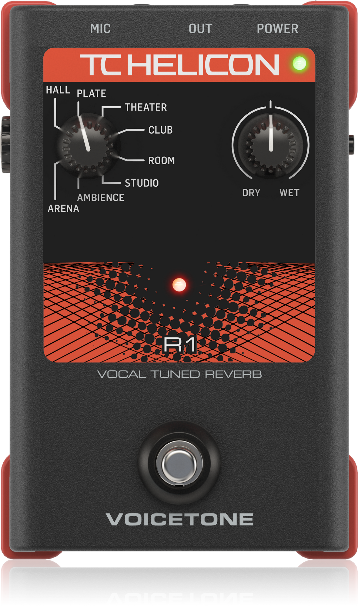 Single-button stompbox gives you easy studio-quality live vocal reverb effects